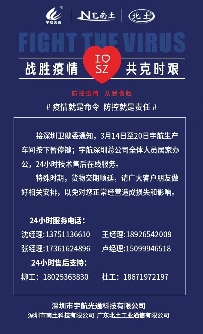 疫情就是命令,防控就是責任,接深圳衛(wèi)健委通知,宇航工業(yè)交換機生產(chǎn)車間按下暫停鍵,給全體合作伙伴造成不便敬請諒解。暫停是為了更好的開始,深圳加油,中國加油!
