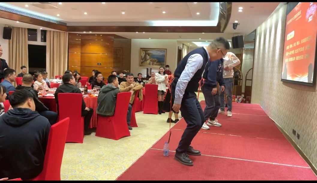 頒獎結束,當然要有小游戲來熱熱場子,調動氣氛。現場準備了2個游戲,蒙眼吃香蕉和蜻蜓點水,大家都踴躍參加小游戲,兩兩搭檔或者三人一組,配合默契,親密無間,既拉近了彼此的距離,也意識到了團隊合作的重要性。游戲過程中,大家都感到歡樂、放松,同時現場氣氛也異常活躍,臺上的參賽者搞笑的動作和不知所措的小手惹得大家捧腹大笑,時常有人吹起口哨,喊起口號,為參賽者加油助威。游戲結束之后,獲勝者還獲得紅包一個。