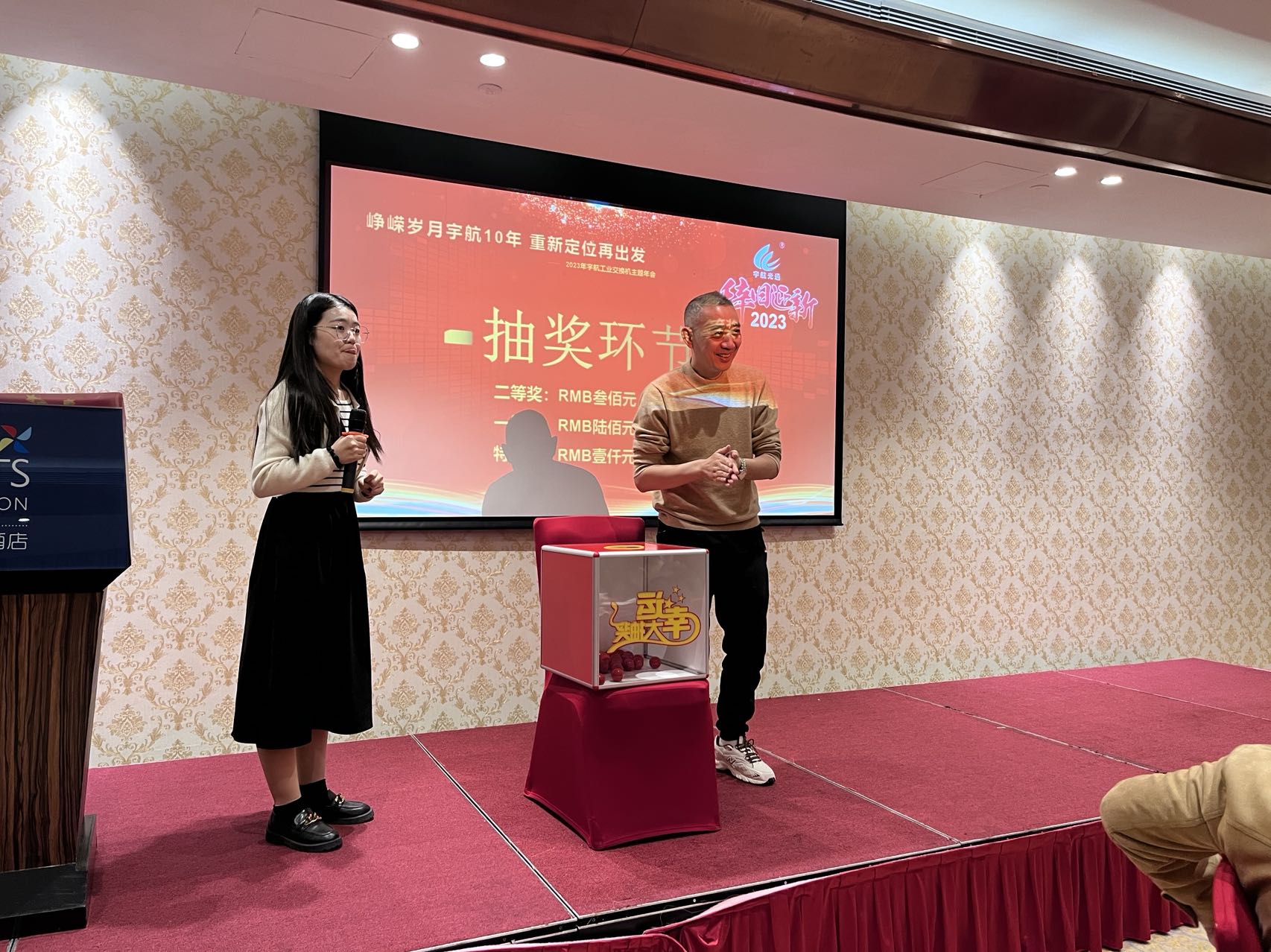 俗話說的好,沒有抽獎的年會不完整,宇航向來比較直接,準備了大量現金,就等幸運者搬回家~大家用掌聲和吶喊聲一起迎來了全場最讓人興奮、期待的抽獎環節,抽獎過程扣人心弦,緊張激動,主持人宣讀中獎者的時候,現場氣氛更是達到了前所未有的高漲,每個人都希望自己可以中獎抱回家,大家也在一片尖叫聲中揭曉了大獎歸屬~