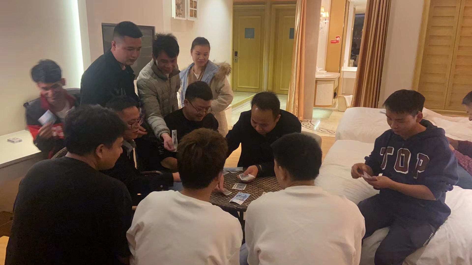 晚宴后,大家摸著圓圓的肚皮,邁著自己的大長腿,三五成群非常默契的一起沖向老板的房間,此時大家都知道,老板又要“送錢”啦,名義上是玩棋牌,實際上是變相發錢,只見老板拿出背包,裝了數不清的錢,見人就給一沓,隨即進行棋牌游戲,不管牌的大小,扛不住老板明目張膽的放水啊,數次回合下來,只見大家手里人民幣紅的綠的一大把,而老板兩手空空。結束后,大家一起聊天,看夜景,絲毫感覺不到困意,有聊不完的夢想,聊不完的感動,最后大家在依依不舍中結束了一整天的歡樂時光。