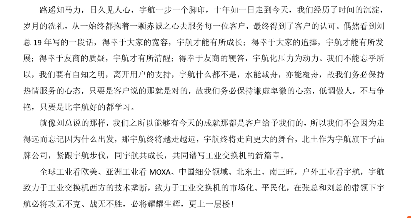 愿我們如李大釗所言,以青春之我創建青春之家庭,青春之國家,青春之民族,青春之人類,青春之地球,青春之宇宙。未來,希望宇航能凝聚更多的青年有志之士,一起將國產工業交換機推向全球!