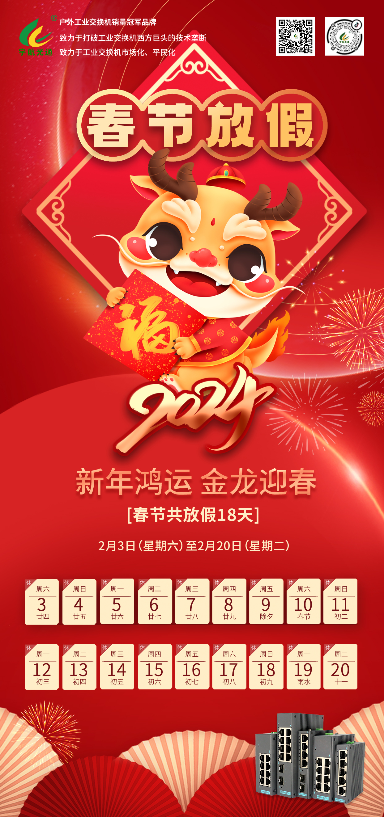 宇航工業交換機2024年春節放假通知!