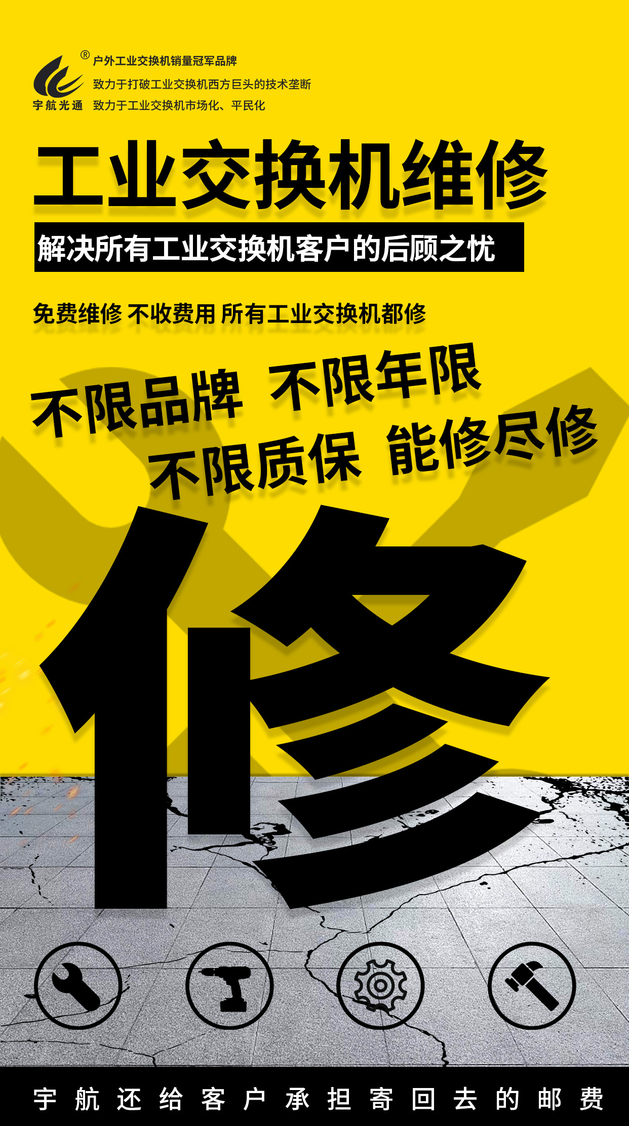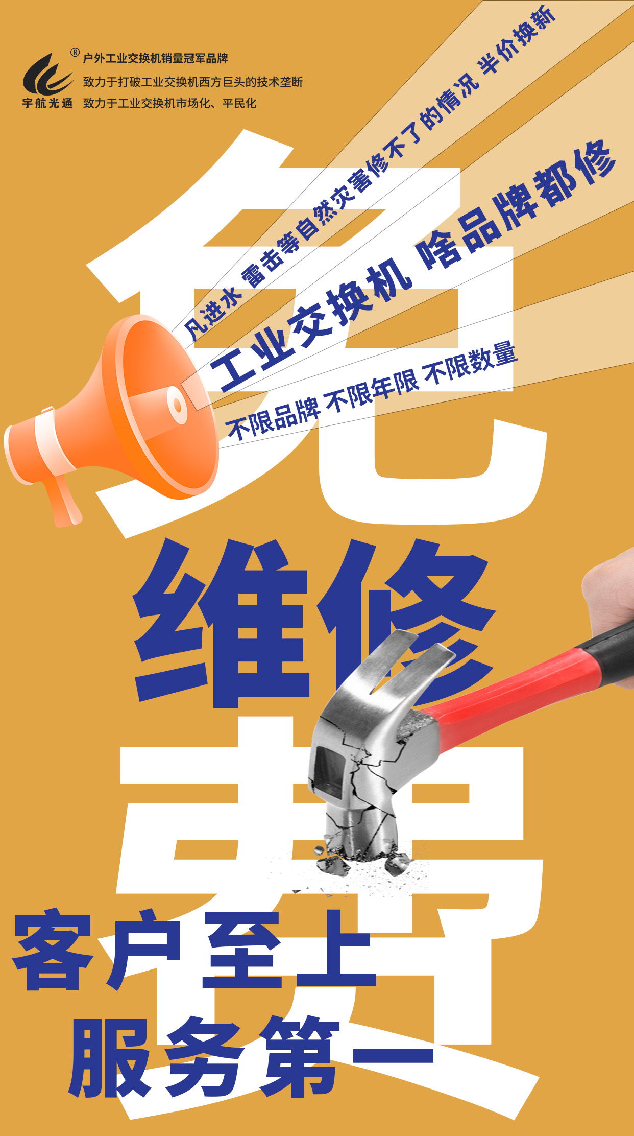 客戶至上、服務(wù)第一:宇航工業(yè)交換機(jī)免費(fèi)維修、半價(jià)換新,解決您的所有后顧之憂!