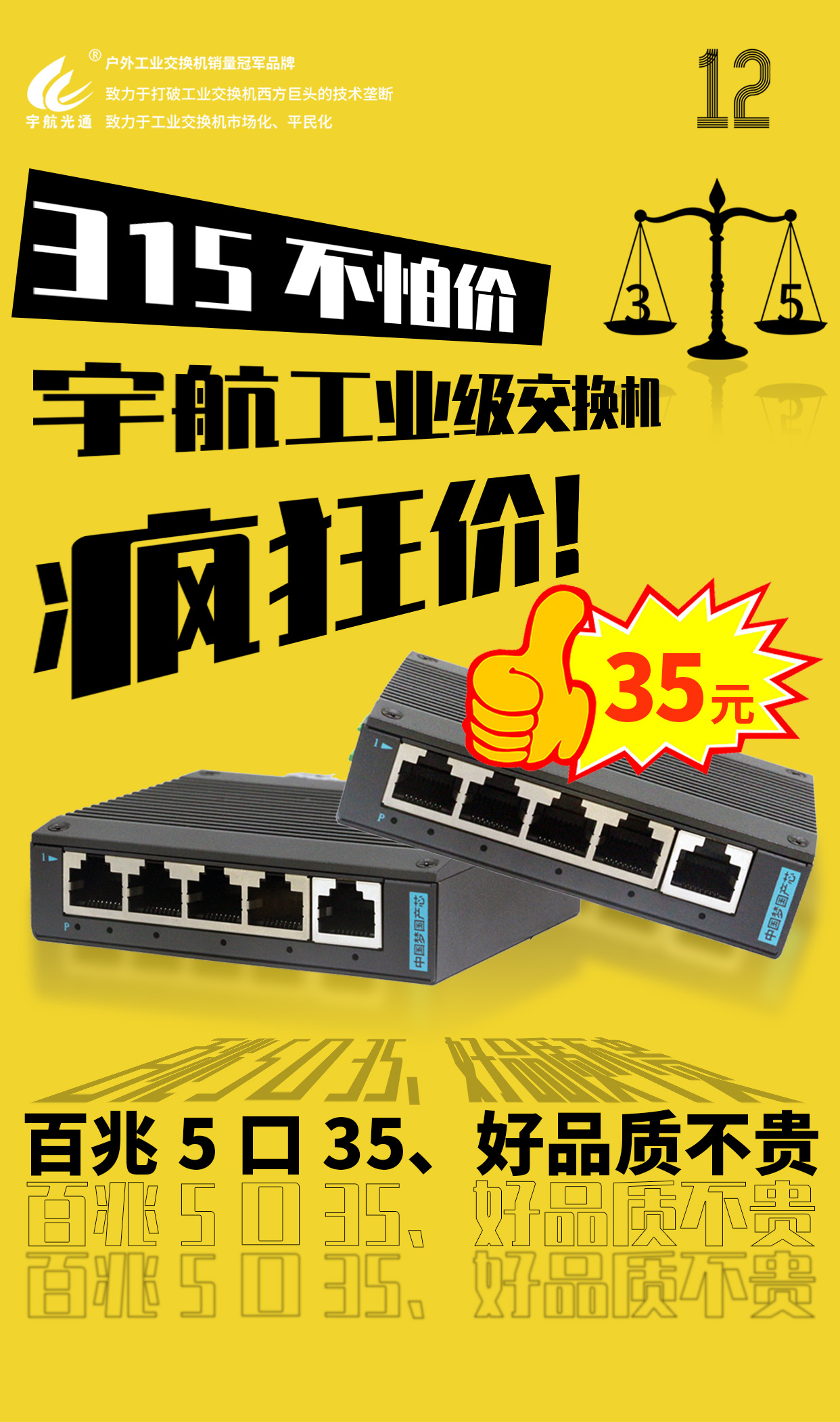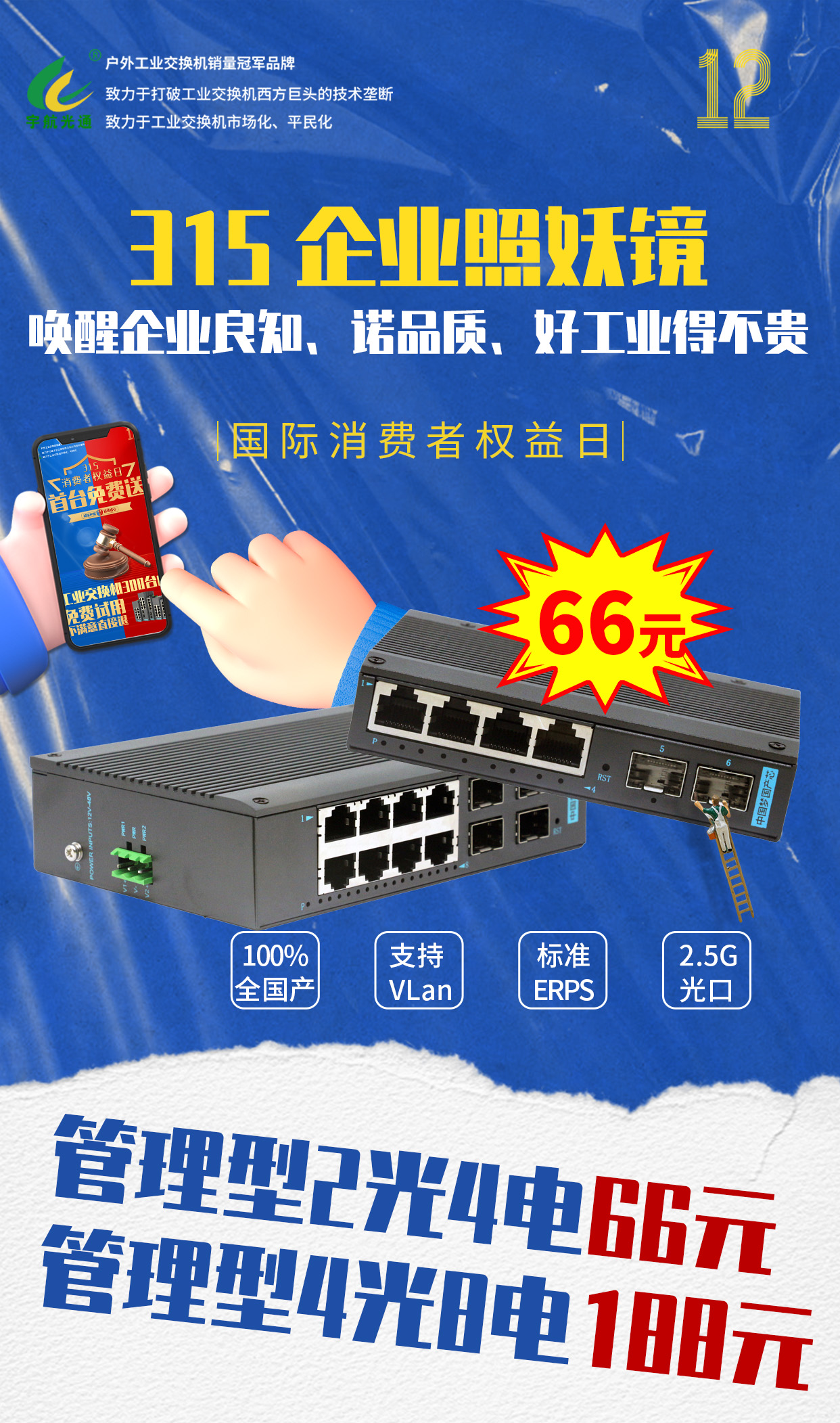 各位親們,您是否還在為尋找一款高性價比的工業級交換機而煩惱?您是否還在為高昂的價格而猶豫不決?今天,宇航工業交換機315狂歡盛典正式拉開帷幕,讓您一機在手,暢享高品質的網絡設備,品質與實惠雙豐收!