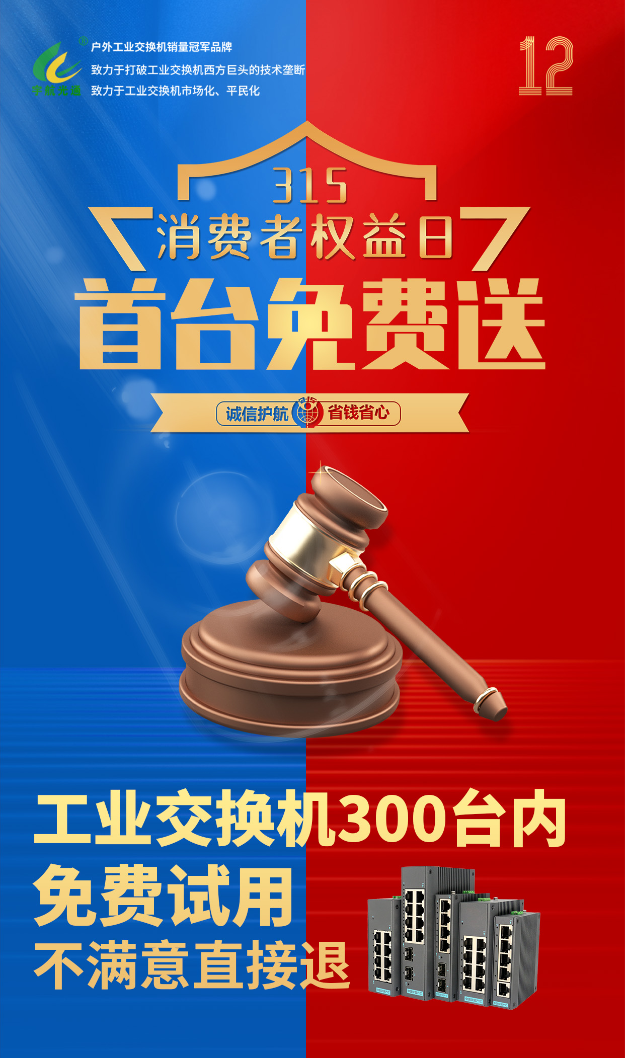 宇航始終堅守品質至上的原則,從源頭把控產品質量,確保每一臺交換機都能達到工業級的嚴苛標準。在這個特殊的315消費者權益日,宇航工業級交換機以消費者需求為核心,以品質為基石,以實實在在的優惠和過硬的品質,回饋廣大消費者的信任與支持!
