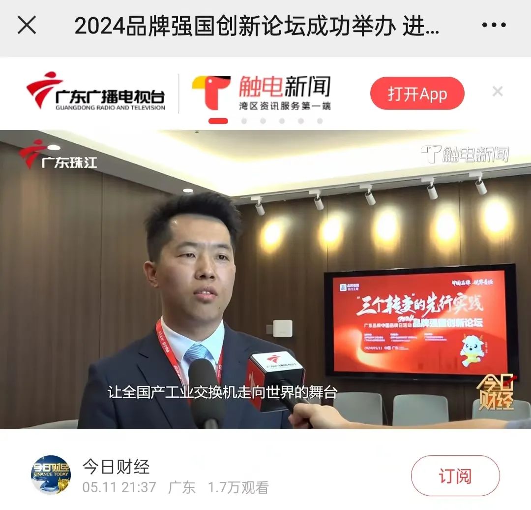 宇航工業交換機成功入選品牌強國先行工程“國貨之光”引起社會各界以及行業內外的高度關注,人民日報、廣東廣播電視臺、廣東珠江衛視、廣東新聞網、廣州日報、今日財經、搜狐網、商協薈、南方視窗、財經頻道 、荔枝網、觸電新聞、商會資訊、中華網、財富網、新聞晨報、新浪財經、閃電新聞、新花城等多家媒體爭相采訪報道!以下內容為篩選部分媒體報道。