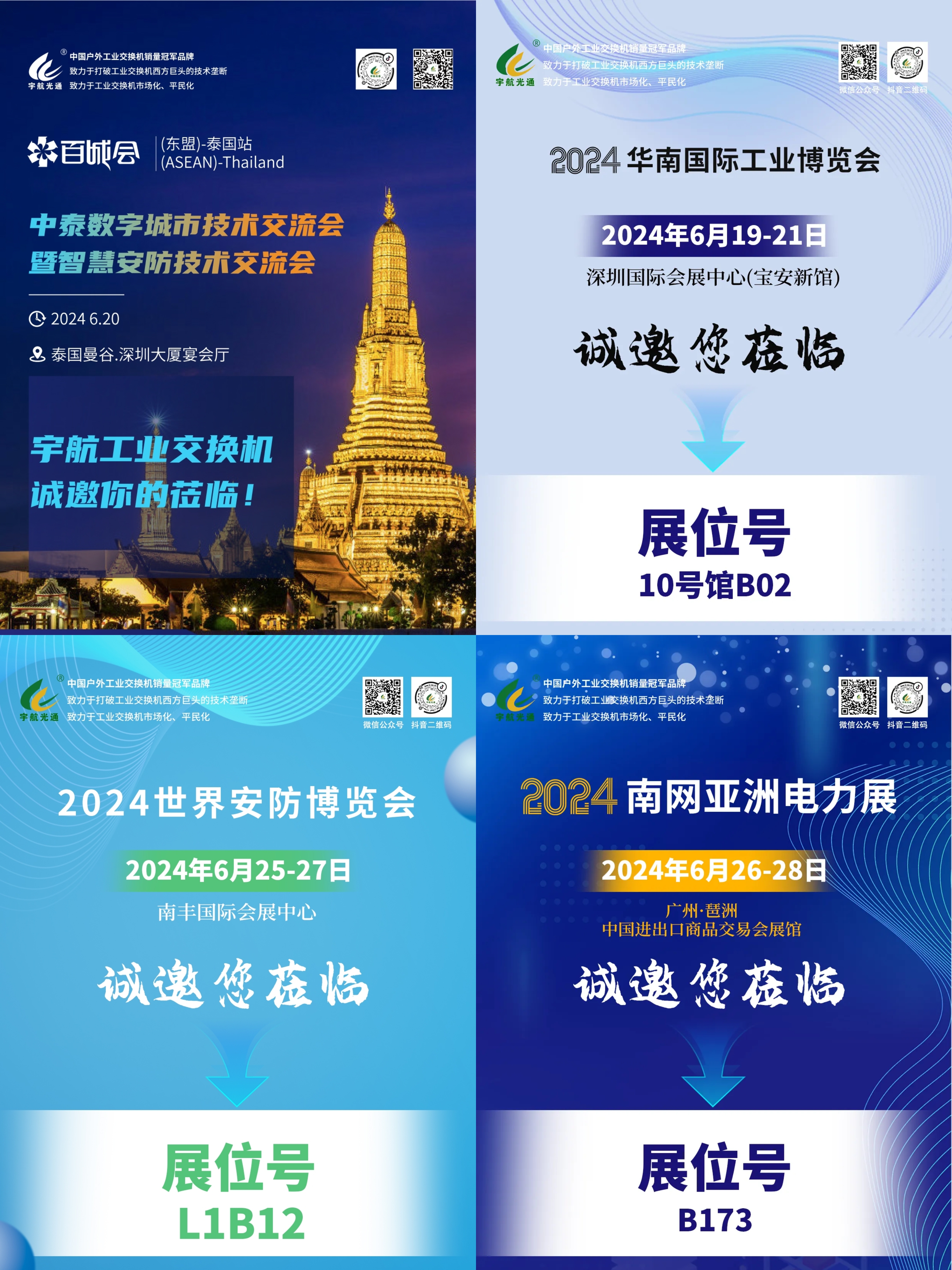 六月下旬,宇航工業交換機繼續與您相約國內外各大城市,深圳,泰國曼谷,湖南湘潭,湖北宜昌、恩施、廣西來賓、廣州、上海等地!宇航工業交換機期待您的蒞臨!