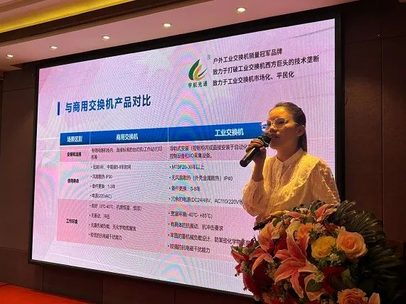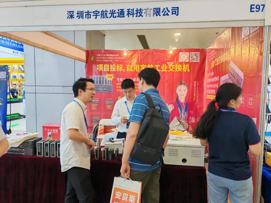 在活動現場,宇航全國產工業交換機憑借其卓越的性能和可靠性,吸引了眾多嘉賓的目光。在會場與工作人員進行熱烈的討論和交流,現場氣氛十分活躍,人流絡繹不絕。