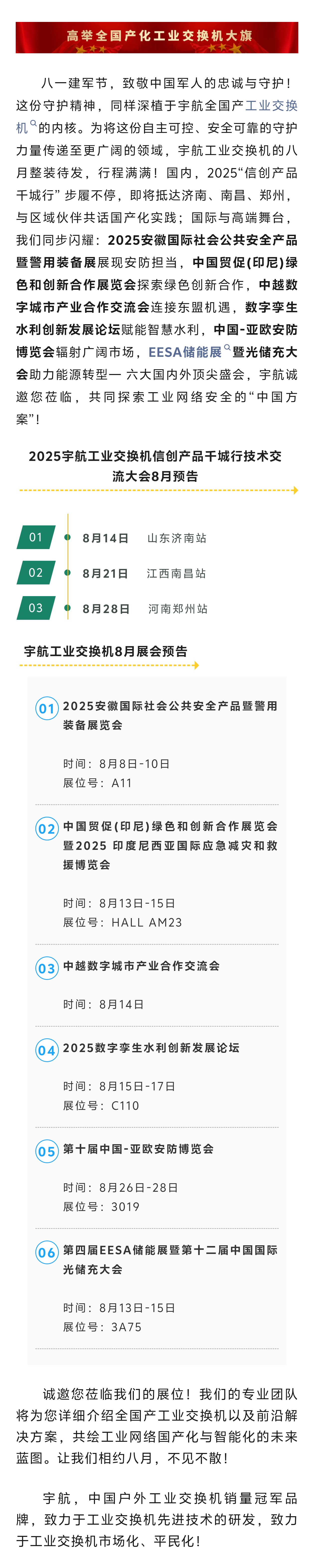 【致敬中國軍人】宇航工業交換機8月全國展會活動行程邀約!
