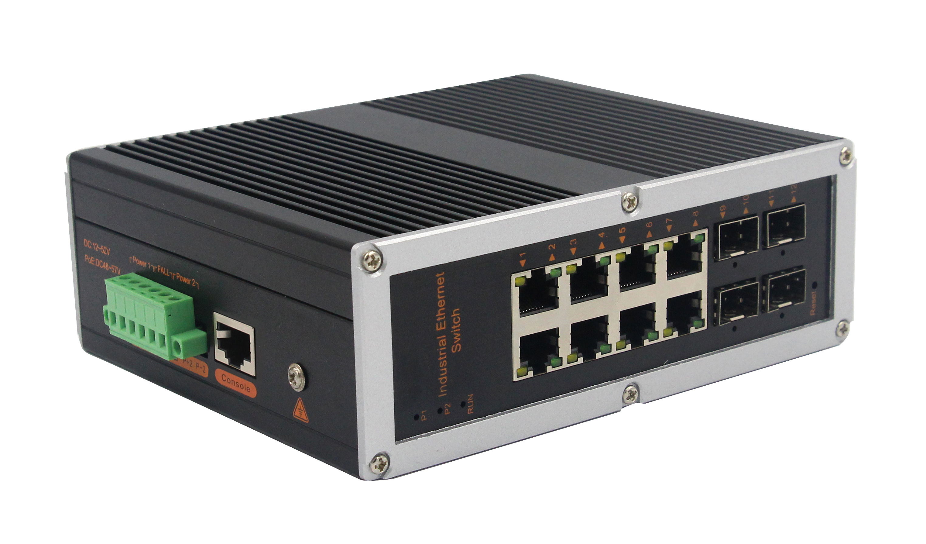 4個千兆光+8個千兆電、SFP接口(不含光模塊)、導軌式、DC12-52V供電