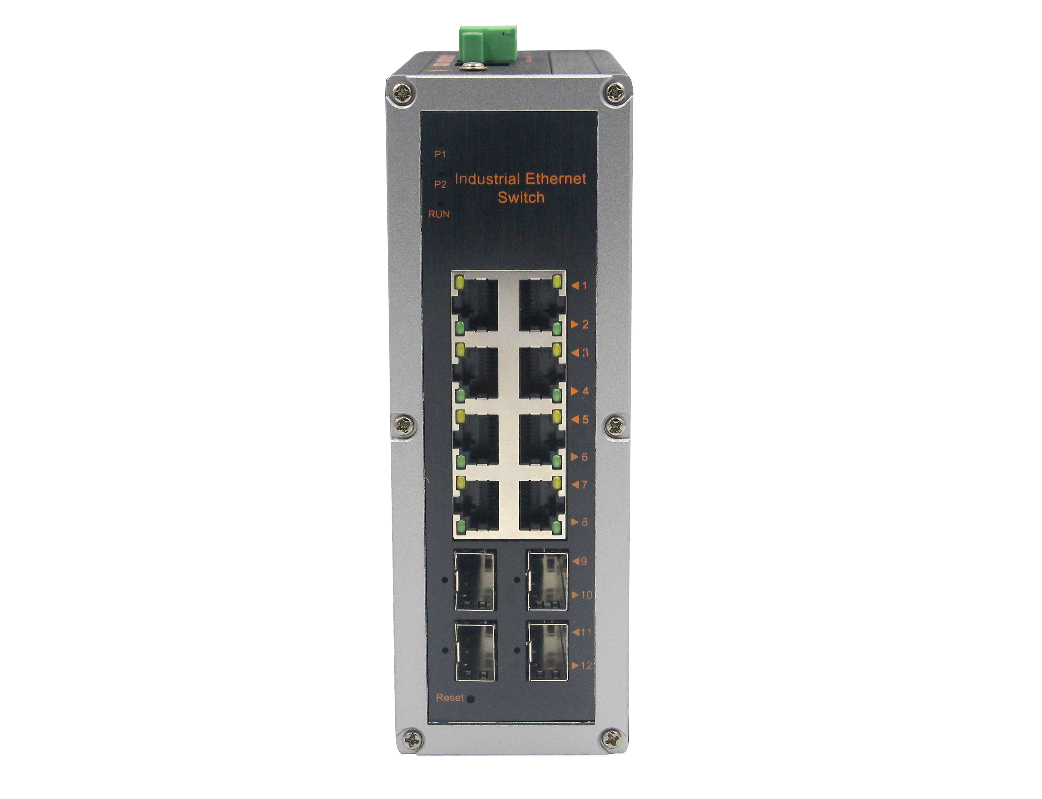 首頁產品系列行業標準&渠道增值產品鋁合金系列導軌式鋁合金弱三層管理型工業交換機網管工業級 千兆4光8電-SFP