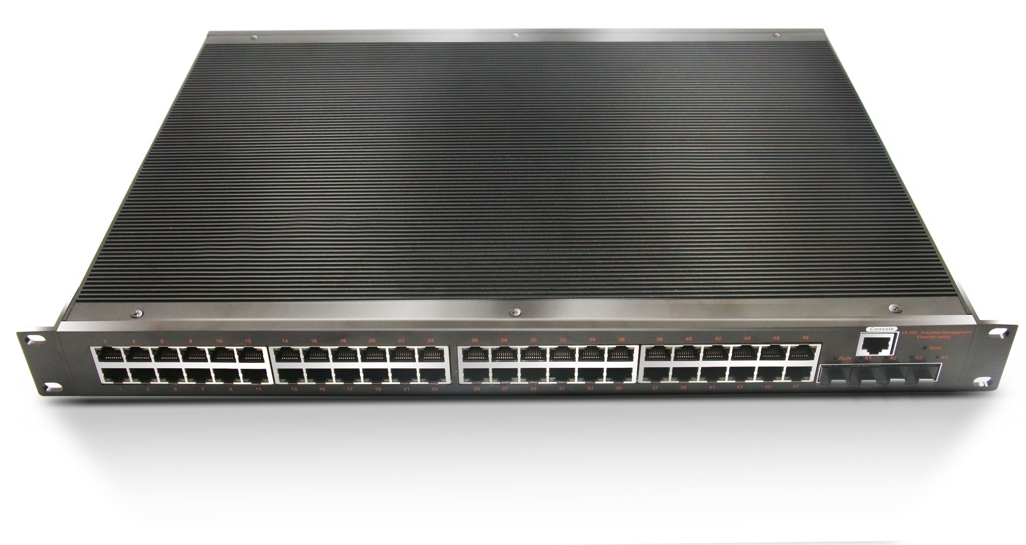 強三層網管工業(yè)級(鋁合金)4萬兆光(可支持千兆光)48千兆電SFP,-機架式-單電源供電-AC/DC110V-240V-寬溫(-40℃-80℃)。默認不含SFP模塊。