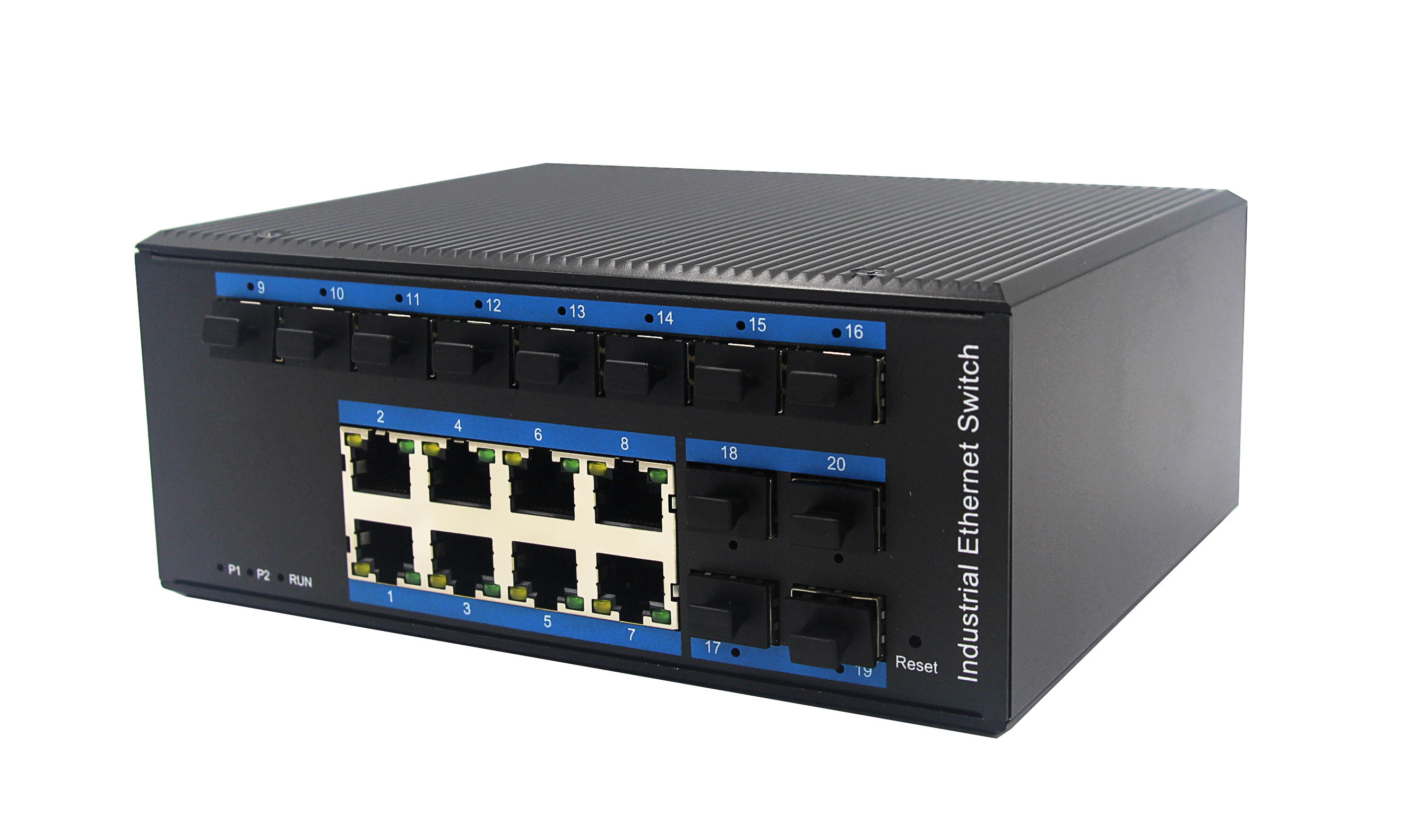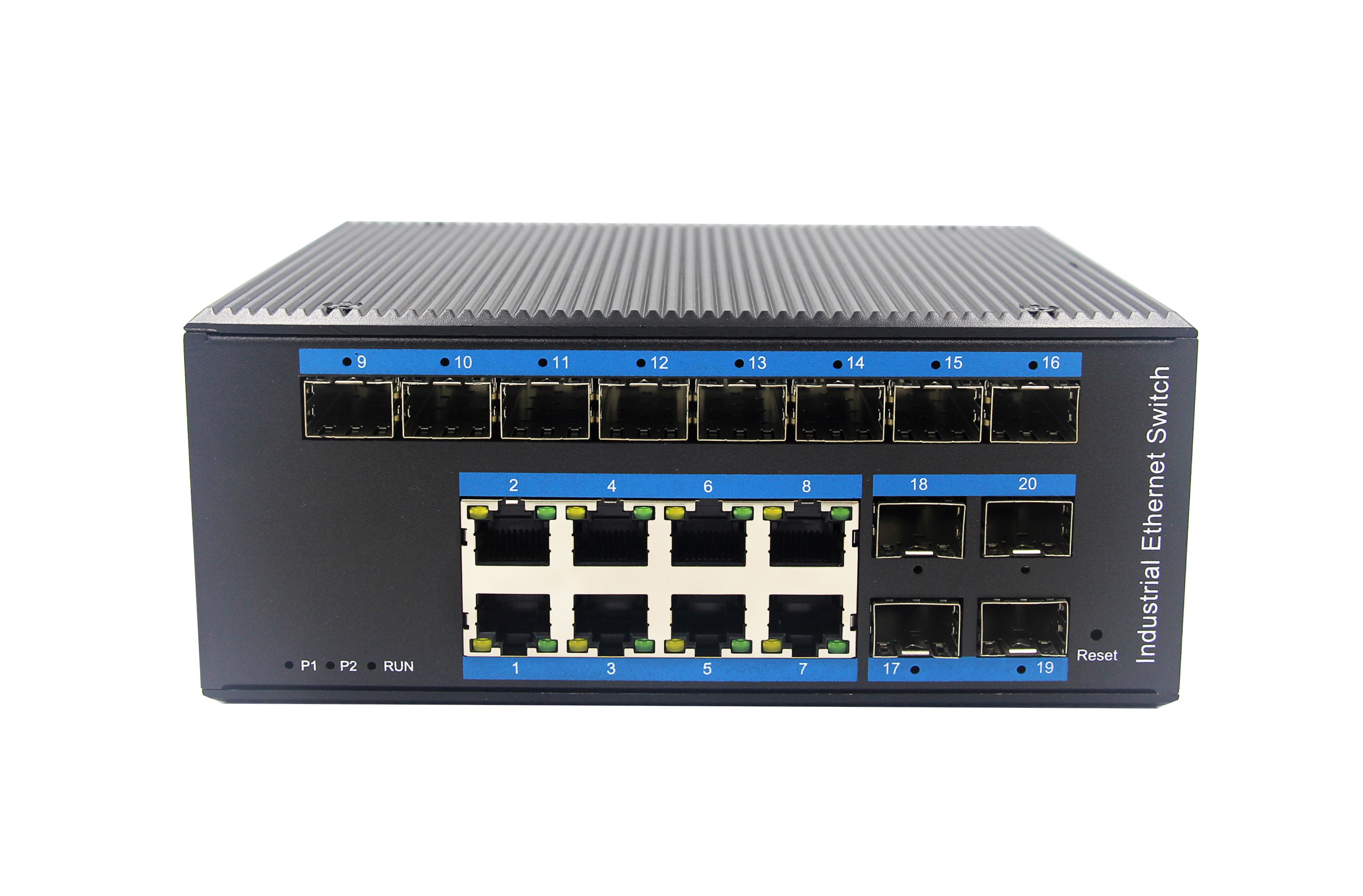 12個千兆光+8個千兆自適應電口、SFP接口、DC12-52V供電-寬溫(-40℃-85℃)