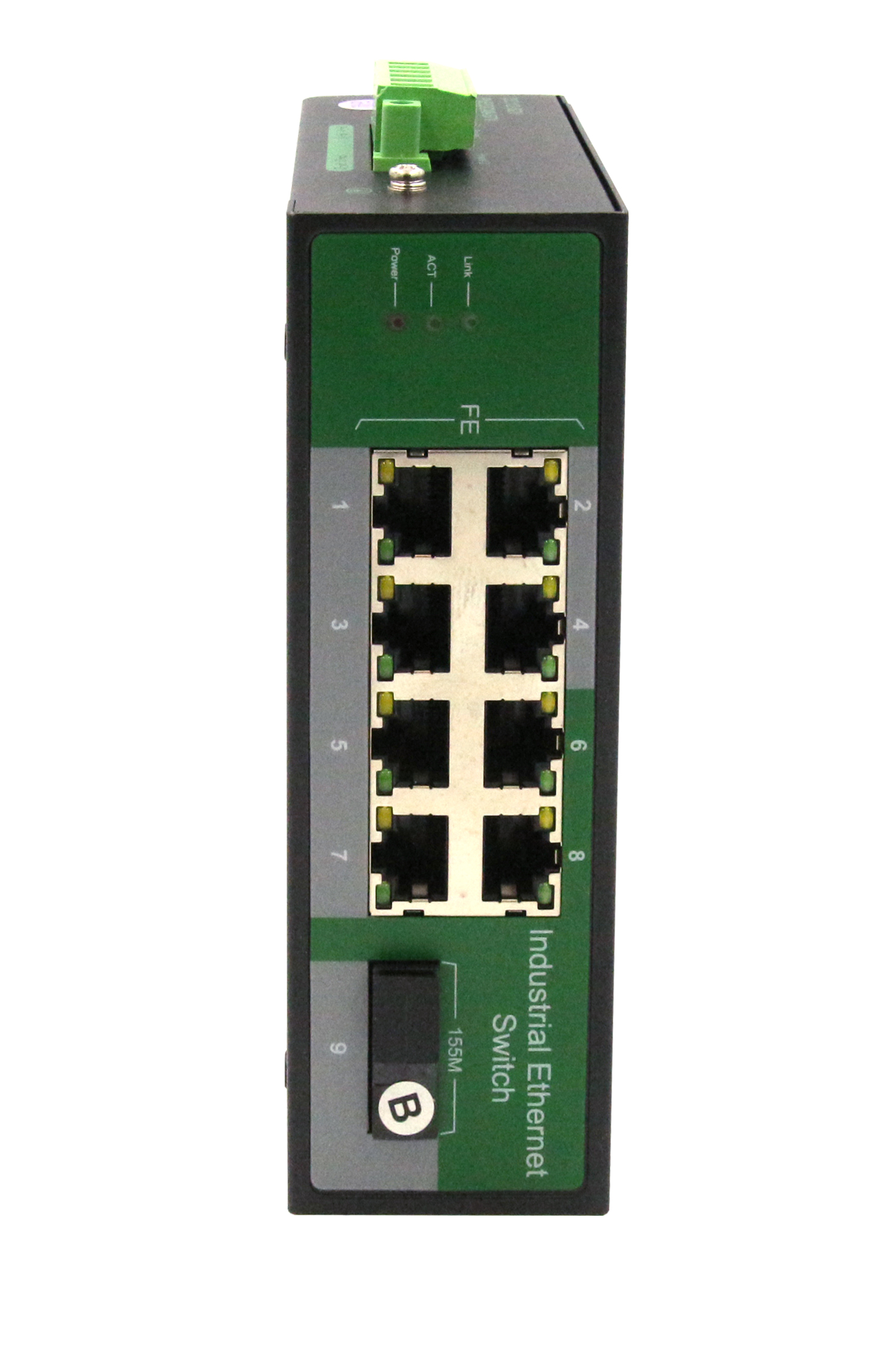 8路百兆電口+1路百兆FX光口工業級以太網交換機,支持8個10/100Base-TX電口和1個100Base-X光口。產品符合FCC、CE、ROHS標準。RDL18F交換機具有-40℃~75℃的工作溫度,具有超強的堅固度能適應各種嚴苛環境,也可以非常方便的安置在空間緊湊的控制箱中。導軌的安裝特性、寬溫操作及擁有IP40防護等級的外殼及LED指示燈,使YH200L-18F成為一個即插即用的工業級設備,為用戶的以太網設備聯網提供可靠、便捷的解決方案。
