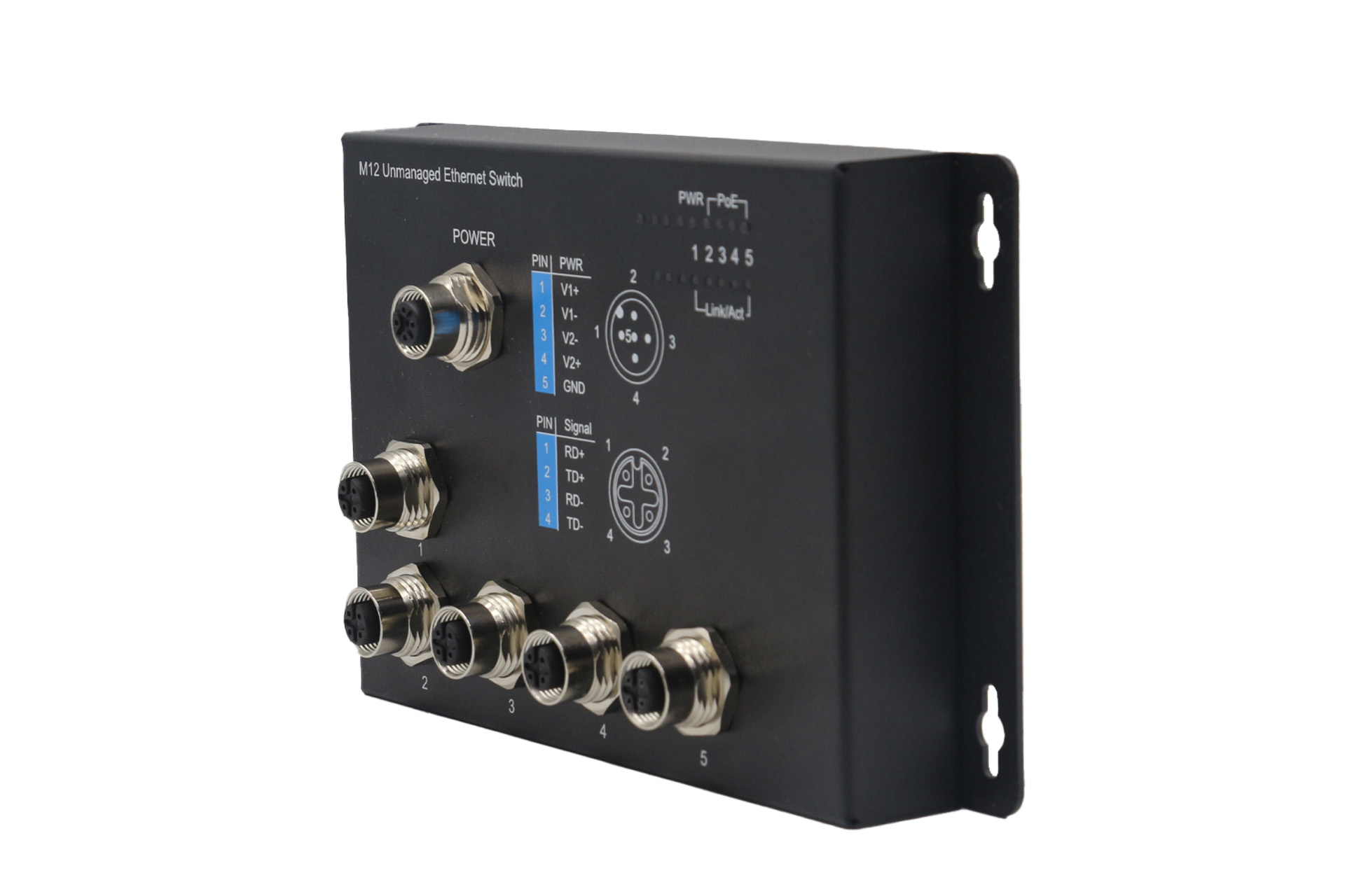 壁掛式5口百兆M12直插加固交換機