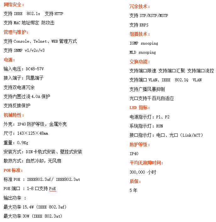 ●安全管理:支持ACL訪問控制列表,支持802.1X