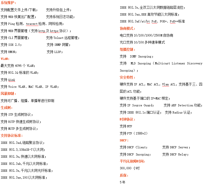 ●管理功能:支持WEB、CLI、SNMP等多種管理方式