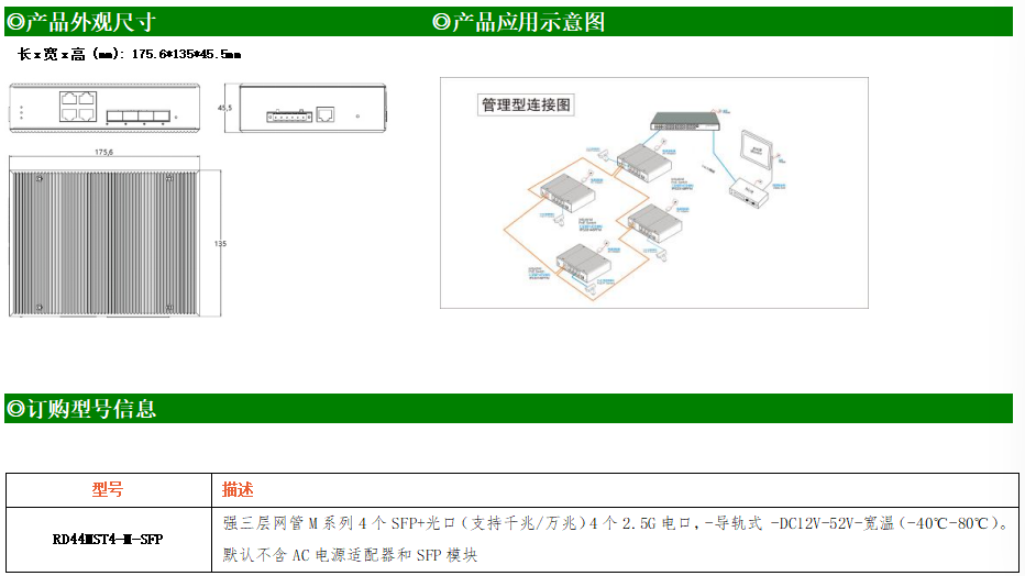 RD44MST4-M-SFP交換機(jī)是我司推出的一款萬兆三層交換機(jī),配備4個萬兆SFP+光口和4個10M/100M/1000M/2500M Base-T自適應(yīng)電口,具備先進(jìn)的硬件處理能力和最豐富的業(yè)務(wù)特性。支持IPv4/IPv6 硬件雙棧及線速轉(zhuǎn)發(fā),使客戶能夠從容應(yīng)對即將帶來的IPv6 時代其提供高容量的交換能力。RD44MST4-M-SFP交換機(jī)具有-40℃~80℃的工作溫度,具有超強(qiáng)的堅固度能適應(yīng)各種嚴(yán)苛環(huán)境。導(dǎo)軌式安裝特性、寬溫操作,使RD44MST4-M-SFP的交換機(jī)成為一個即插即用的工業(yè)級設(shè)備,為用戶的以太網(wǎng)設(shè)備聯(lián)網(wǎng)提供可靠、便捷的解決方案。