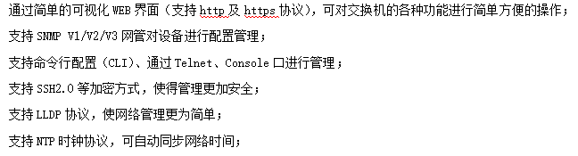 ●管理功能:支持WEB、CLI、SNMP等多種管理方式