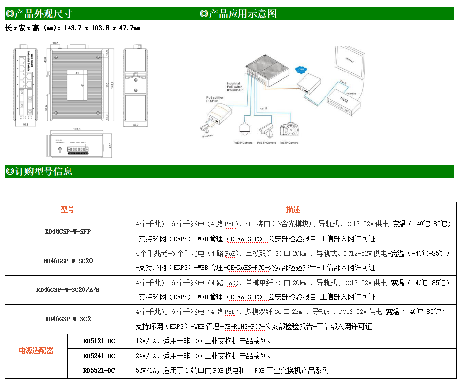 RD46GSP-W-SFP系列WEB網(wǎng)管工業(yè)級以太網(wǎng)交換機,產(chǎn)品符合FCC、CE、ROHS標(biāo)準(zhǔn),支持工業(yè)現(xiàn)場所需的以太網(wǎng)二層協(xié)議,保證通信網(wǎng)絡(luò)的穩(wěn)定性。該系列交換機采用低功耗、無風(fēng)扇設(shè)計,確保無噪聲干擾,同時支持-40~85℃工作溫度和良好的EMC電磁兼容性能,保證在惡劣的工業(yè)環(huán)境中保持穩(wěn)定的工作,為工廠自動化,智能交通,視頻監(jiān)控等工業(yè)應(yīng)用領(lǐng)域組建快速穩(wěn)定的網(wǎng)絡(luò)終端接入網(wǎng)絡(luò)提供安全可靠的解決方案。