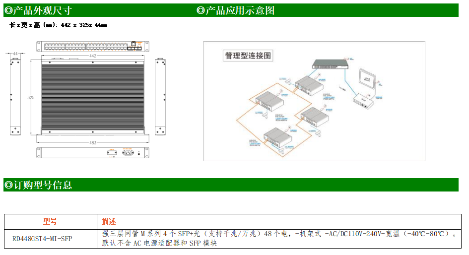 RD448GST4-MI-SFP交換機是我司推出的一款萬兆三層交換機,配備4個萬兆SFP+光口和48個10/100/1000M Base-T自適應(yīng)電口,具備先進的硬件處理能力和最豐富的業(yè)務(wù)特性。支持IPv4/IPv6 硬件雙棧及線速轉(zhuǎn)發(fā),使客戶能夠從容應(yīng)對即將帶來的IPv6 時代其提供高容量的交換能力。RD448GST4-MI-SFP交換機具有-40℃~80℃的工作溫度,具有超強的堅固度能適應(yīng)各種嚴苛環(huán)境,使RD448GST4-MI-SFP的交換機成為一個即插即用的工業(yè)級設(shè)備,為用戶的以太網(wǎng)設(shè)備聯(lián)網(wǎng)提供可靠、便捷的解決方案。