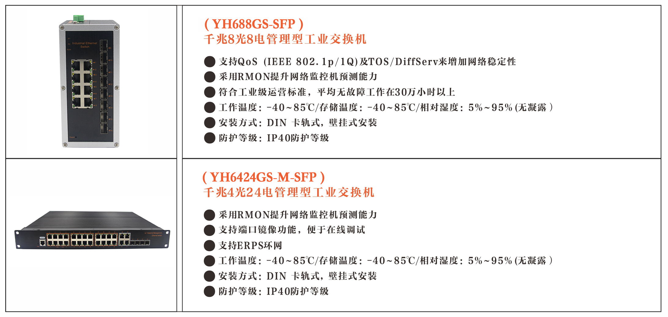 宇航在高速路監控系統解決方案中采用了YH6248GS-SFP,YH6282GFS和YH6416GS-SFP,根據環境情況,在每一個段落都設有一個接口站,線路中每個段落的監控采用高清攝像頭,通過環網交換機將視頻信息匯聚起來,再通過環網冗余的方式將每個監控點的匯聚在監控子站。監控子站通過千兆以太網光網絡通道上傳匯聚在監控中心的千兆交換機上,進行視頻信息傳輸到監控大屏幕上,以便于實時掌控高速路的通行狀況。